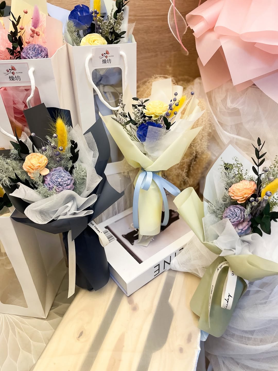 沒有太多華麗的裝飾,但每一束都用心包好